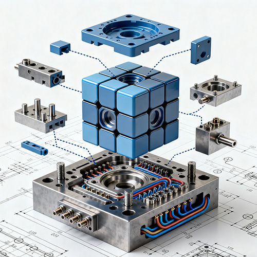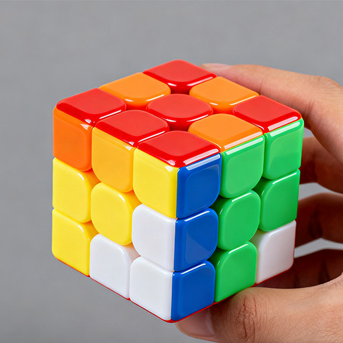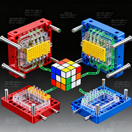 Plast Rubik Cube -formsprutning hänvisar till en teknik som producerar kärnkomponenter i Rubiks kuber (som kubblock, centrala axelhylsor, fjädrar, positionering av spännen) genom anpassade injektionsprocesser och sätter slutligen monterar dem i plast Rubiks kuber som kan rotera flexibelt och ha en restaureringsfunktion. Dess kärnfunktion använder injektionsmålningsprocessen för att realisera högprecisionsmålning (dimensionell tolerans inom ± 0,02 mm) och strukturell anpassningsbarhet för Rubiks kubkomponenter, vilket säkerställer smidig rotation av angränsande kubblock (rotationsmotstånd 50-100 g) och exakt positionering (Misalignment-avvikelse ≤0.1mm). Jämfört med traditionell manuell bearbetning eller 3D-utskrift kan plast Rubik Cube-formsprutning realisera storskalig standardiserad produktion, balansera kostnadskontroll och produktkonsistens. Det används allmänt i leksaker, utbildning, konkurrenssporter och andra områden och anpassar sig till olika Rubiks kubbehov från startnivå till professionella hastighetslösningsnivåer.