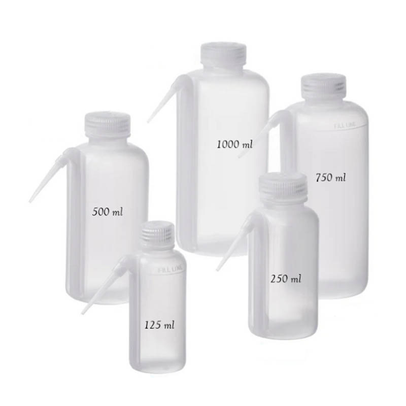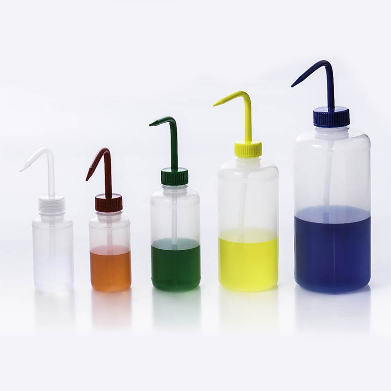 3. Wide-Mouth plasttvättflaskor: flaskor med breda öppningar för enkel fyllning och rengöring.